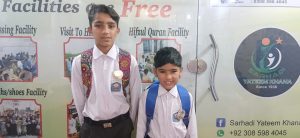 Muhammad Azan was admitted in class 2nd & Hashim khan is admitted in class one. Their School fee, uniform, books & bags etc are all sponsored by School Management. SYK management would like to Thank the school management for this kind gesture.