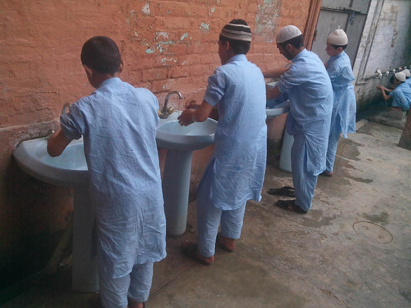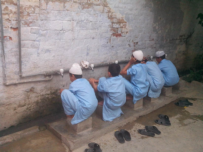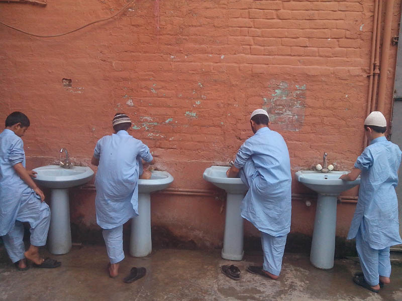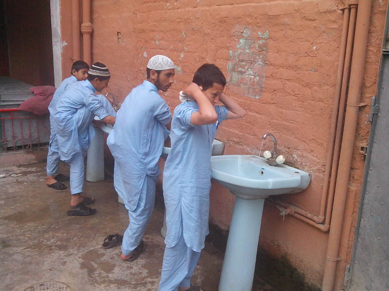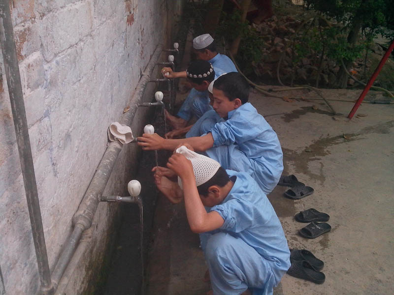 Students are doing Ablution for Prayer and Religious Education